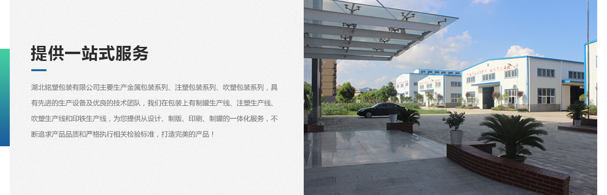 湖北銘塑包裝有限公司一家集研發(fā)、生產(chǎn)、銷售于一體的較優(yōu)秀民營企業(yè),技術(shù)力量雄厚,產(chǎn)品質(zhì)量可靠。位于交通暢順,百業(yè)興旺、經(jīng)濟富裕、政策開放的孝感開發(fā)區(qū)域。我們企業(yè)的營銷戰(zhàn)略是以建筑為土壤,以產(chǎn)品為種子,以質(zhì)量為肥料,讓綠色鋪滿全球。憑借多年來的行業(yè)經(jīng)驗,公司不斷進行創(chuàng)新和研發(fā),為市場提供更廣泛的產(chǎn)品應用領(lǐng)域和更好環(huán)保節(jié)能產(chǎn)品,為國家能源環(huán)保戰(zhàn)略和可持續(xù)發(fā)展戰(zhàn)略作出應有的貢獻。 湖北銘塑包裝有限公司主要生產(chǎn)金屬包裝系列、注塑包裝系列、吹塑包裝系列,具有先進的生產(chǎn)設(shè)備及優(yōu)良的技術(shù)團隊,我們在包裝上有制罐生產(chǎn)線、注塑生產(chǎn)線、吹塑生產(chǎn)線和印鐵生產(chǎn)線,為您提供從設(shè)計、制版、印刷、制罐的一體化服務,不斷追求產(chǎn)品品質(zhì)和嚴格執(zhí)行相關(guān)檢驗標準,打造更好的產(chǎn)品!