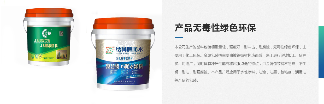 本公司生產(chǎn)的塑料包裝桶重量輕,強度好,耐沖擊,耐腐蝕,無毒性綠色環(huán)保,主要用于化工包裝。金屬包裝桶主要由鍍錫板材構(gòu)造而成,易于進行涂鍍加工、品種多、用途廣,同時具有沖壓性能高和屈服點低的特點,且金屬包裝桶不易碎,不生銹,耐油,耐強腐蝕。本產(chǎn)品廣泛應用于水性涂料,油漆,油墨,膠粘劑,潤滑油等產(chǎn)品的包裝。